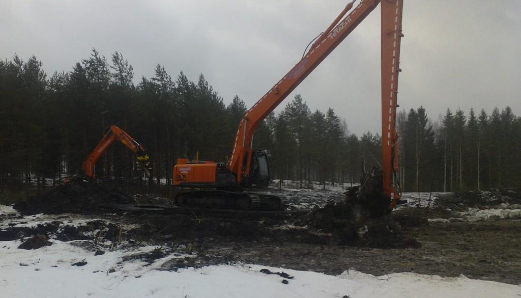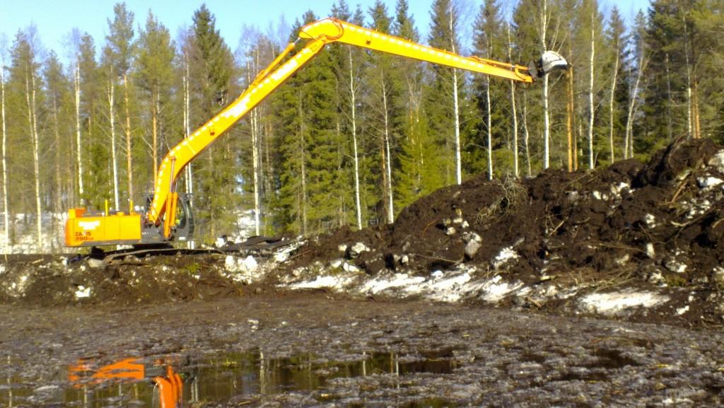 Kalämäen kosteikon rakentaminen jatkuu Saarisenojan pohjoispuolella, mihin syntyy laaja avovesialue. Osa siitä jää matalaksi ja tavoite on, että siihen syntyisi runsaasti kasvillisuutta. Kaivinkoneeseen vaihdettiin pitkä puomi, jolla kaivu ja maiden siirto onnistuu paremmin kuin perusvarustuksella. Pitkän puomin ulottuvuus on jopa 17 metriä.
