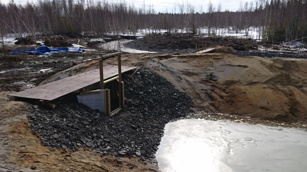Kokko-ojan haaran lietteenpoistojärjestelmän sillat valmistuivat tänään. Lietteenkeruualtaan ja lietteenkuivatusaltaiden patojen yli rakennettiin hoitosillat. Kokko-ojan yli rakennettiin mönkijällä ja moottorikelkalla kuljettava silta ojan takana sijaitsevien vesienhoitokohteiden huoltoa, tarkkailua ja ylläpitoa varten. Kokko-ojan haaran rakenteet ovat valmiit otettavaksi käyttöön. Tämä tapahtuu kuitenkin vasta kesällä, kun jäät kaikkien maarakenteiden alta ovat sulaneet ja virtaukset voivat toimia suunnitellulla tavalla.