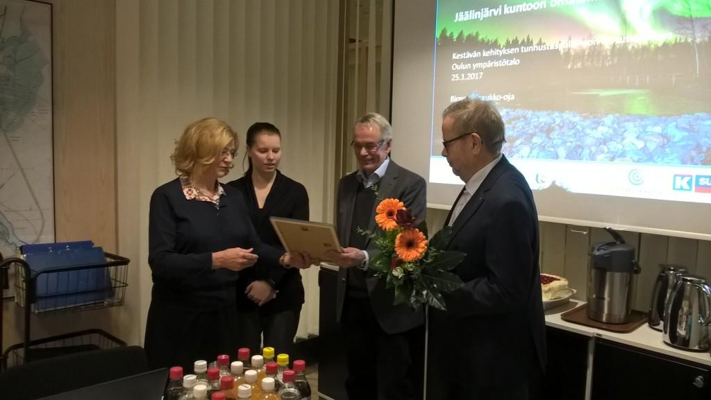 Oulun seudun ympäristötoimen johtokunnan myöntämä Kestävän kehityksen tunnustuspalkinto luovutettiin yhdistyksen edustajille johtokunnan kokouksessa. Palkinto on tunnustus ansiokkaasta ja esimerkillisestä kestävän kehityksen periaatteet huomioon ottavasta toiminnasta. Palkinnon luovuttivat johtokunnan puheenjohtaja Jenna Simula ja ympäristönsuojeluyksikön päällikkö Marketta Karhu. Palkinto sisältää kunniakirjan, tuhannen euron rahapalkinnon ja onnittelukukat. Palkinto jaetaan joka toinen vuosi. Palkinnon ottivat vastaan puheenjohtaja Markku Vuolteenaho ja sihteeri Birger Ylisaukko-oja. Yhdistys esitteli toimintaansa johtokunnalle videolla ja lyhyellä presentaatiolla. Tiedote palkinnon myöntämisestä on luettavissa täältä: Kestävän kehityksen tunnustuspalkinto