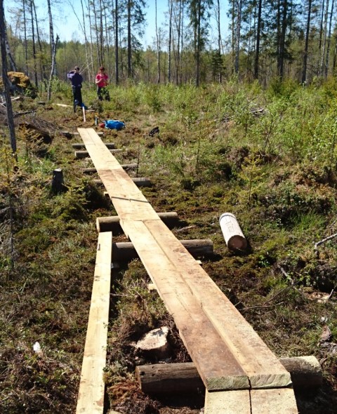 Vesienhoitoyhdistyksen, Jäälin asukasyhdistyksen ja Jäälien Leijonien yhteishanke maastotietoreitin rakentamiseksi Jäälistä Koiteliin eteni pitkospuiden rakentamisvaiheeseen. Ensimmäisiin rakentamisvaiheen talkoisiin osallistui yhdekseksän henkilöä, ja tulosta syntyi hyvin. Kuluvan kesän tavoitteena on rakentaa 470 metriä pitkoksia sekä kolme siltaa ojien yli. Rakennusmateriaalit siirrettiin kohteille moottorikelkoilla talven lopulla.