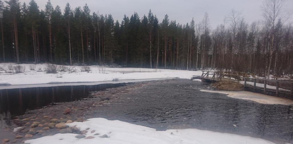 Yöpakkaset ovat hidastaneet lumen sulamista, vaikka päivät ovat olleet lämpimiä. Tulva on nyt nousussa. Viime vuorokauden aikana Jäälinjärven pinta nousi seitsemän senttiä. Järveen tuli vettä noin kaksi kuutiometriä sekunnissa. Viime kevään tulovirtaama oli suurimmillaan 2. toukokuuta 3,5 kuutiometriä sekunnissa. Järven pinta kävi noin 40 senttimetriä tämänhetkistä korkeammalla.