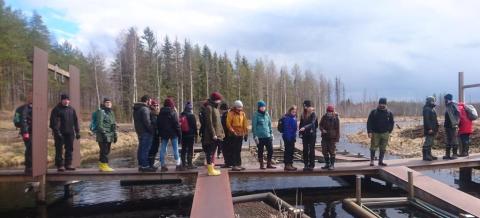 Laivakankaan koulun 5A-luokka teki patikkaretken Kalamäestä Kokkokankaan laavulle perjantaina 24.5. Oppaaksi kutsuttu Vesienhoitoyhdistyksemme edustaja odotti retkeläisiä aamulla Kalamäen raunioiden luona. Puoli yhdeksän aikoihin kaartoikin iloinen joukko opettajansa Virven johdolla sovitulle kohtauspaikalle. Tervehdysten jälkeen seurasi tietoisku Kalamäen asutuksesta ja vesienhoitorakenteista. Kohta suuntasimme pitkoksille kohti Kokkokangasta. Matkalla käsittelimme eri paikoissa alueen esihistoriaa ja luonnonhistoriaa, vesienhoitorakenteita ja niiden toimintaa sekä eri metsänkäsittelykohteiden tilaa ja piirteitä. Polku sivuaa myös hyvin säilynyttä Kalamäen talon tervahautaa, mistä saimme linkin menneiden vuosisatojen tärkeimpään suomalaiseen vientituotteeseen, sen varassa toimineeseen merenkulkuun ja sen tervattuun pohjaan. Kokkokankaan laavulla syttyi tuli ja makkarat sekä vaahtokarkit maistuivat. Perilläolon hetki kului nopeasti. Jäljet siivottuamme lähdimme paluumatkalle Kalamäkeen, jonne saavuimme suunnitelman mukaisesti ennen kello yhtätoista kenenkään kastumatta. Oppilaat opettajineen jatkoivat matkaa pyörillään koululle ruokailuun, jossa oli osuvasti tarjolla uunimakkaraa.