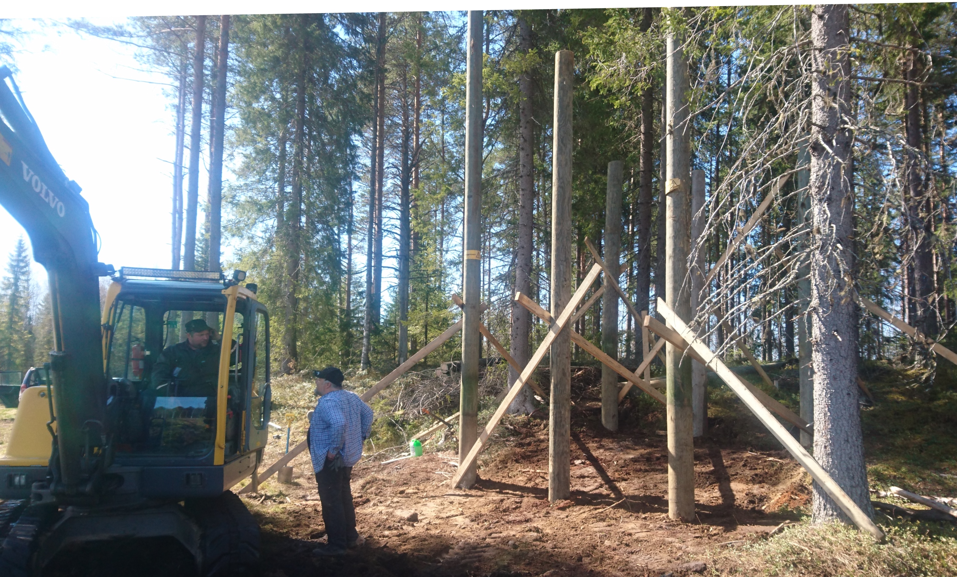 Jäälin Kalamäkeen tulevan lintutornin pystyrunko on asennettu. Sen varaan rakennetaan katselutaso ja sen päälle katto. Seuraavaksi pystyrunko jäykistetään ja ryhdytään rakentamaan katselutasoa. Pystyrunko tehtiin käytetyistä sähköpylväistä. Jäälin asukasyhdistyksellä on lupa käyttää niitä, kun pylväät suojataan ihokosketukselta katselutason kohdalta.