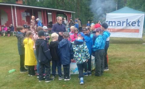 Koulun omalla rastilla tunnistettiin kaloja ja vesikasveja sekä haettiin vastauksia visaisiin vesistöaiheisiin kysymyksiin.