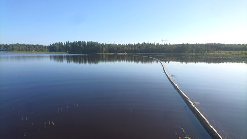 Järvialtaan seinämänä on suodatinkangas, jota kannattaa puomi ja painottaa kettinki ja betoniankkurit.