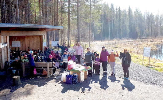 Markku Vuolteenaho raportoi: Lasten iloinen hälinä kaikui taas Kalamäen laavulla sään suosiessa. Superluokan ja eskarioppilaita pyöräili tapahtumaan 58 ja opettajat, vanhemmat ja muut aikuiset päälle. Kolme tuntia meni hujauksessa. Vesienhoitoyhdistyksen tukijoukko taustajoukkoineen sai ylenpalttiset kiitokset.