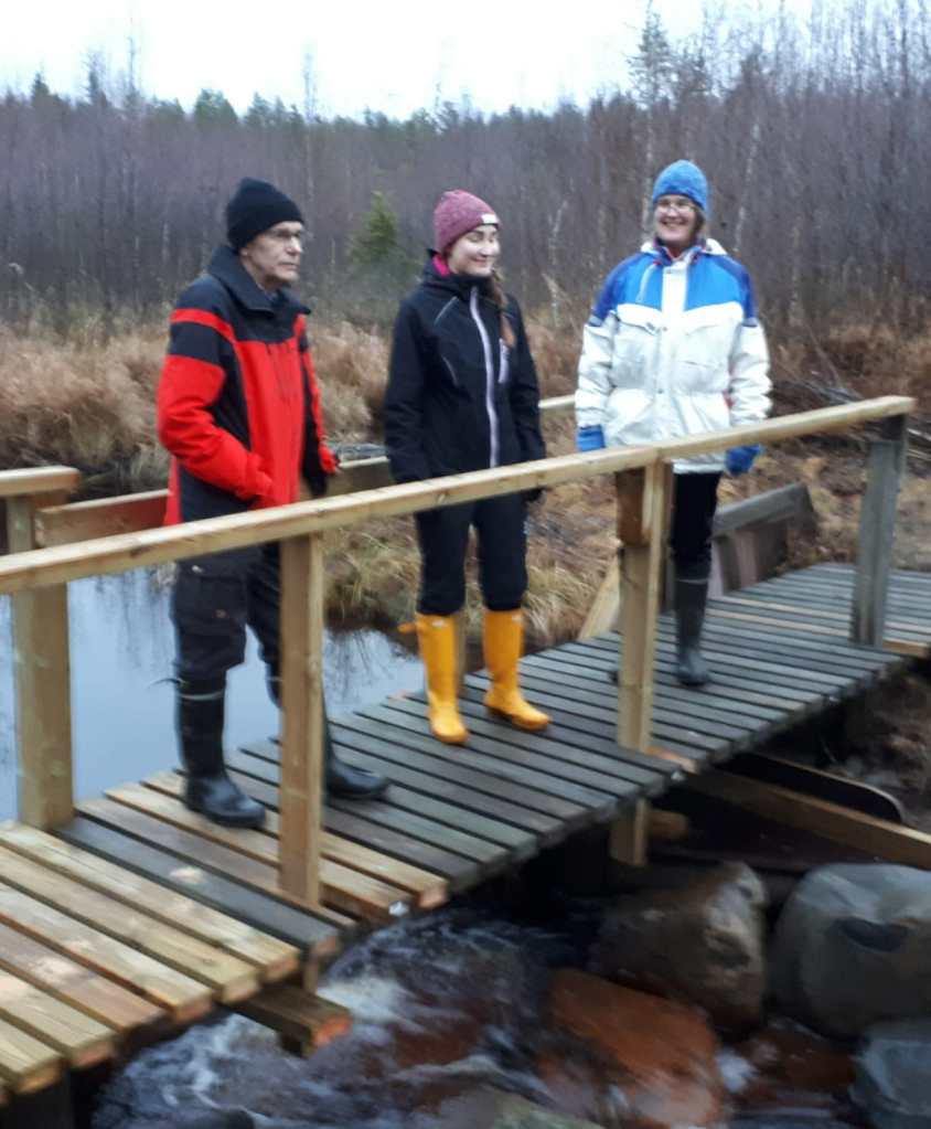 Rautavirta-tutkijat Heini Postila ja Petra Korhonen Jääli-vierailulla Korteojan padolla. Kuva: Markku Vuolteenaho